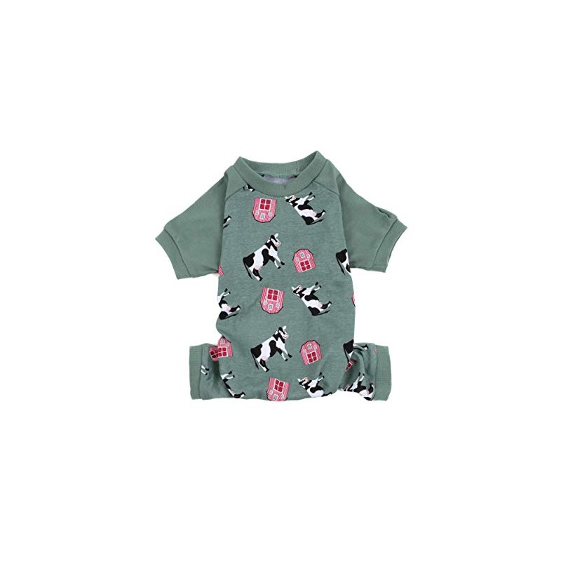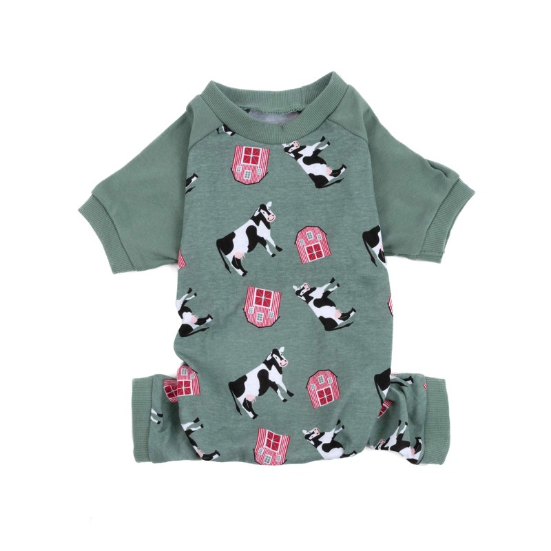 Leveret Dog Pajamas 100% Cotton Cow Green Medium