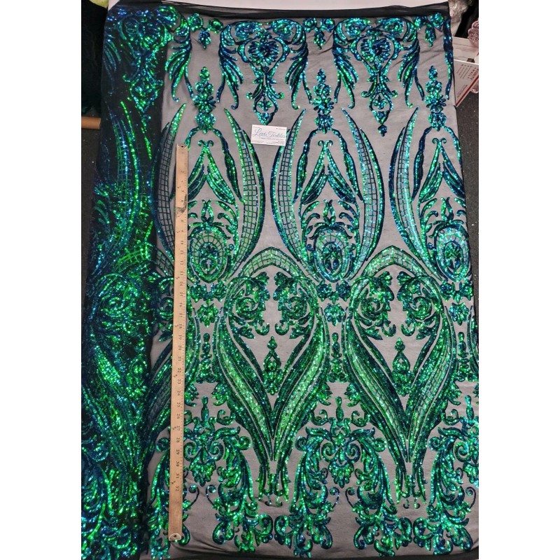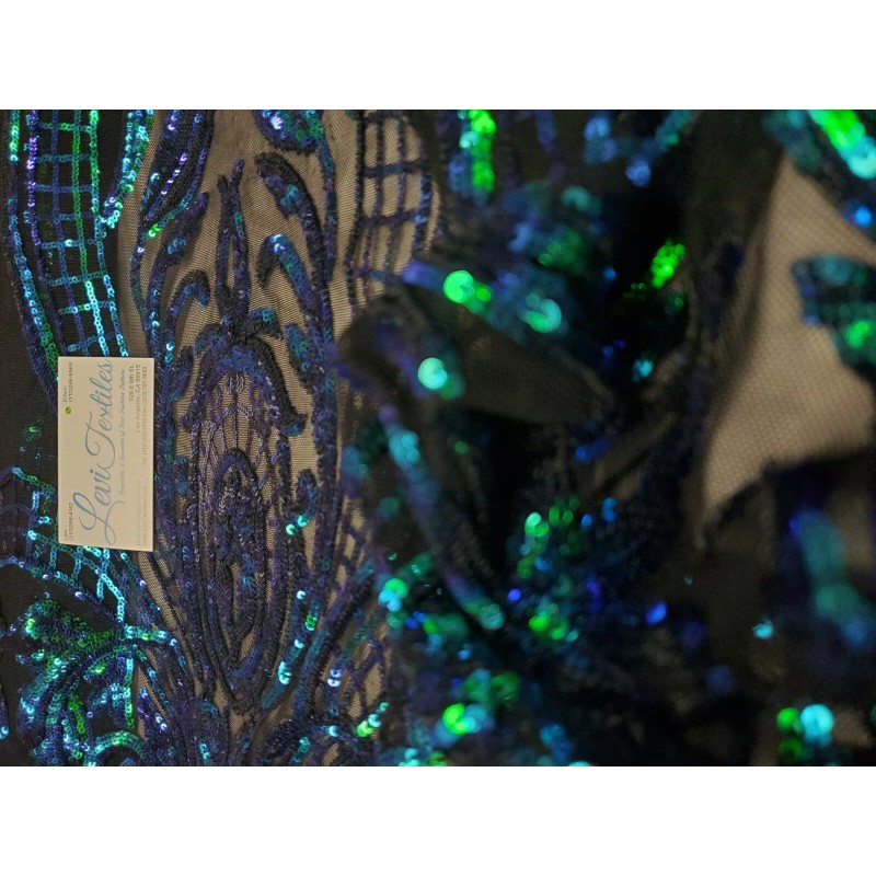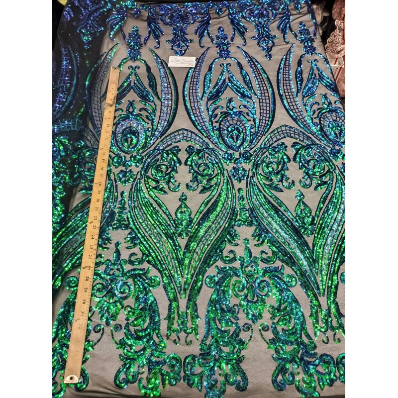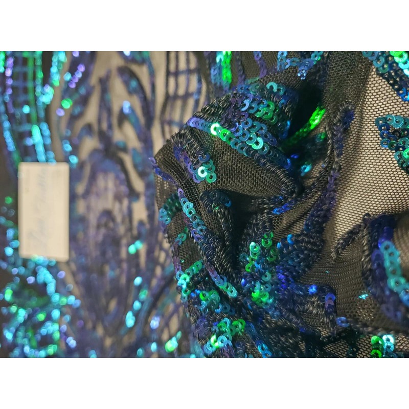 - Features: Iridescent, Sequin embroidered, 4 Way stretch, sequin lace, spandex, shiny, bling, Embroidered, Hologram