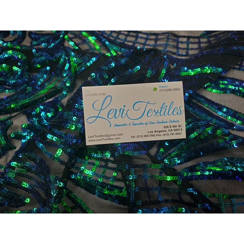 Levi Textiles, INC. Iridescent Green "Hourglass " Stretch Nylon Spandex Mesh Sequin Fabric