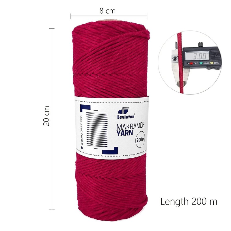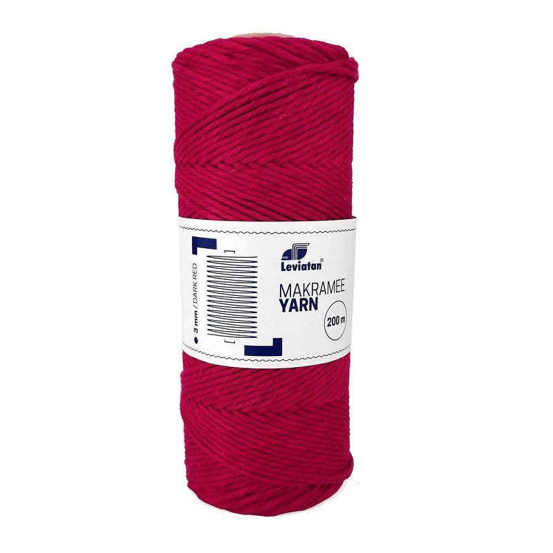 LEVIATAN Natural Macrame Yarn - 200 m Super Soft Macrame Cord with 3 mm Single Twist - 100% Macrame Cotton Cotton Thread Rope for Crafts, Weddings and Christmas Decorations Dark Red