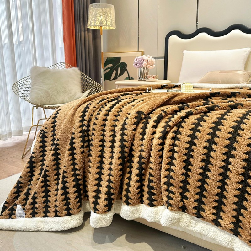 • Unique Design:coral fleece Jacquard face and sherpa fleece reverse with stripe design offer you a softer touch. Snuggling on your couch or bed with our blankets to enjoy happy hours. Different colors meet your needs.