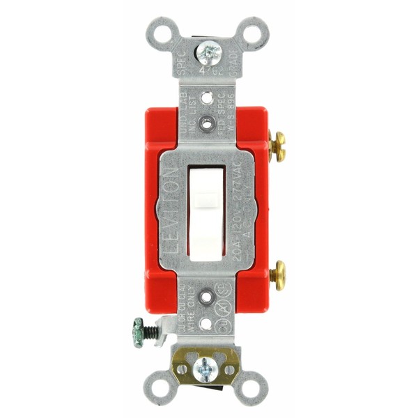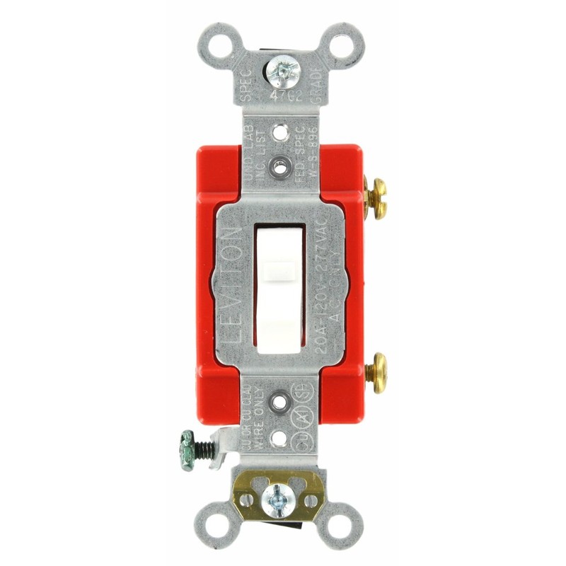 Leviton's Industrial Grade AC toggle switches for extra heavy-duty applications represent top-of-the-line quality and peak performance. Leviton uses the finest materials available and the highest production standards to produce industrial switches of unmatched versatility and reliability. 20-Amp, 120 Volt, Toggle Lighted Handle, Illuminated Off Single-Pole AC Quiet Switch, Extra Heavy Duty Grade, Self Grounding, White.