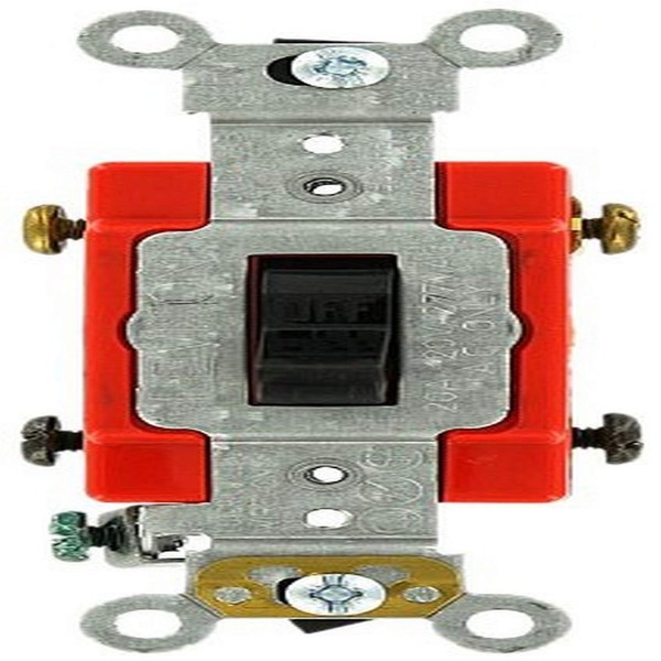 Leviton 1222-2E 20 Amp, 120/277 Volt, Toggle Double-Pole AC Quiet Switch, Extra Heavy Duty Grade, Self Grounding, Back and Side Wired, Black