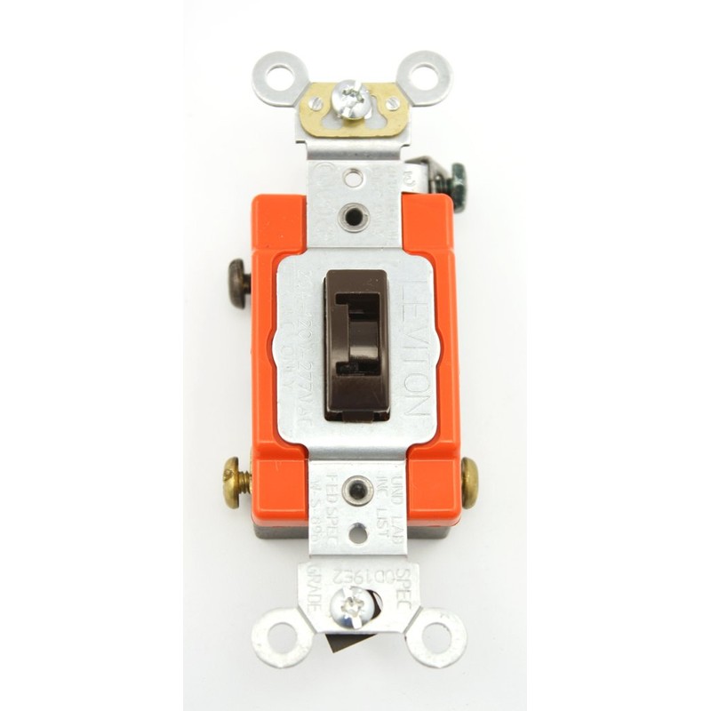 Leviton 1223-2L 20-Amp, 120/277-Volt, Toggle Locking 3-Way AC Quiet Switch, Extra Heavy Duty Grade, Self Grounding, Back and Side Wired, Brown