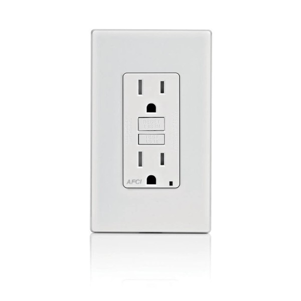 15 Amp Tamper Resistant AFCI Receptacle Outlet with Test Reset Button White