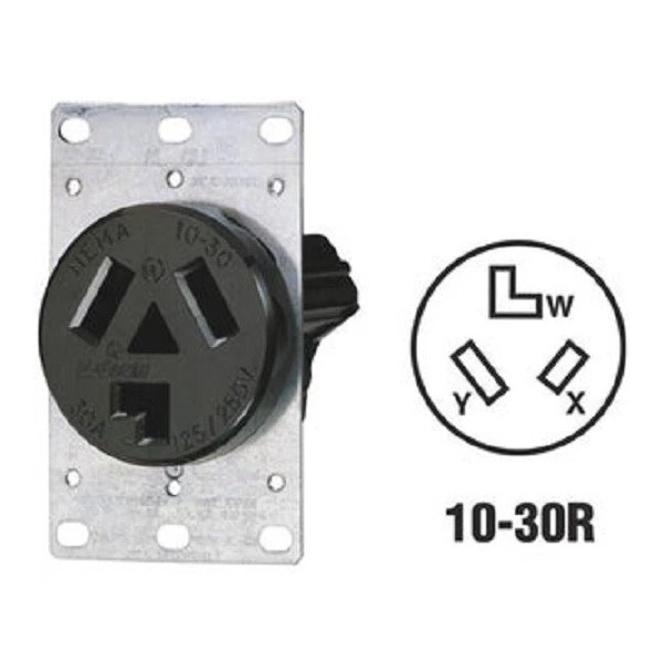 Leviton (2)-Leviton 30A Flush Mount Black 10-30R 3-Wire Dryer Power Outlet R30-05207-S10