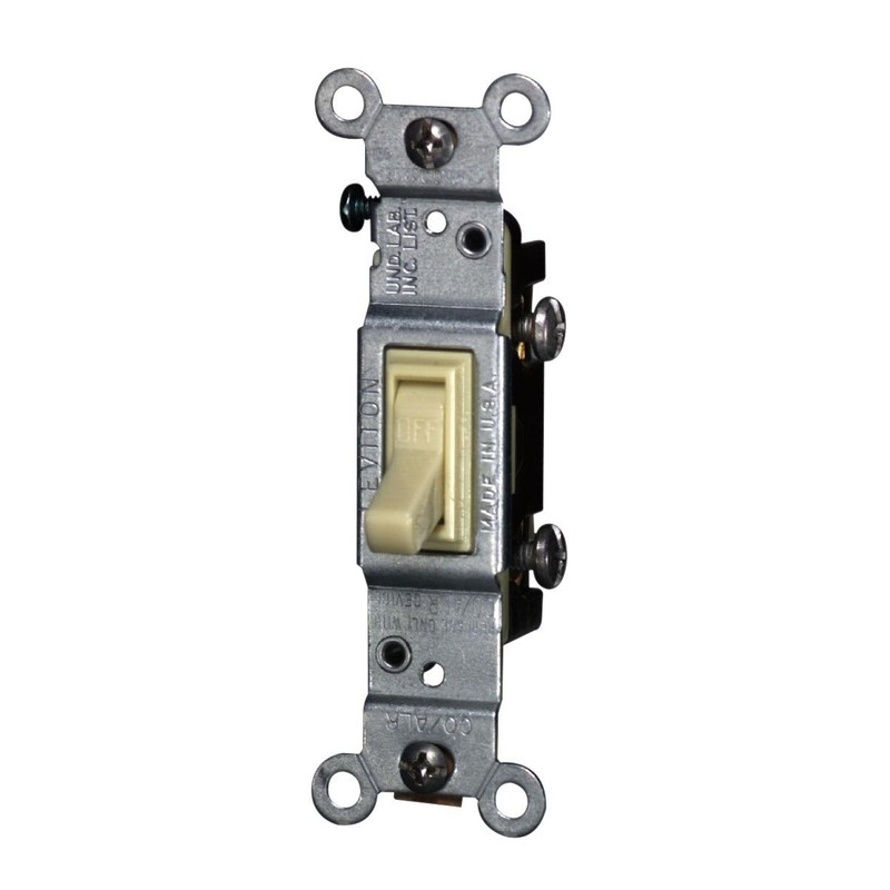 Tried-and-true toggle designs, Leviton Residential Grade AC Quiet Switches cover all the bases; they install easily and are available in standard and illuminated versions. Their toggles and frames are constructed of impact- resistant thermoplastic, and they feature large head, hardened triple-drive screws for easy installation. Leviton's traditional switches are compatible with a wide range of Leviton plastic and metal wallplates. 15 Amp, 120 Volt, Toggle Co/Alr Single-Pole AC Quiet Switch, Residential Grade, Grounding, Ivory.