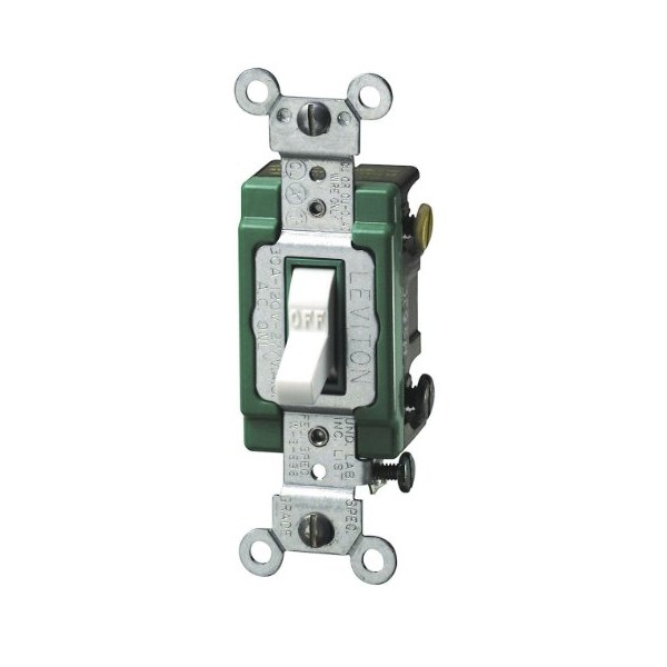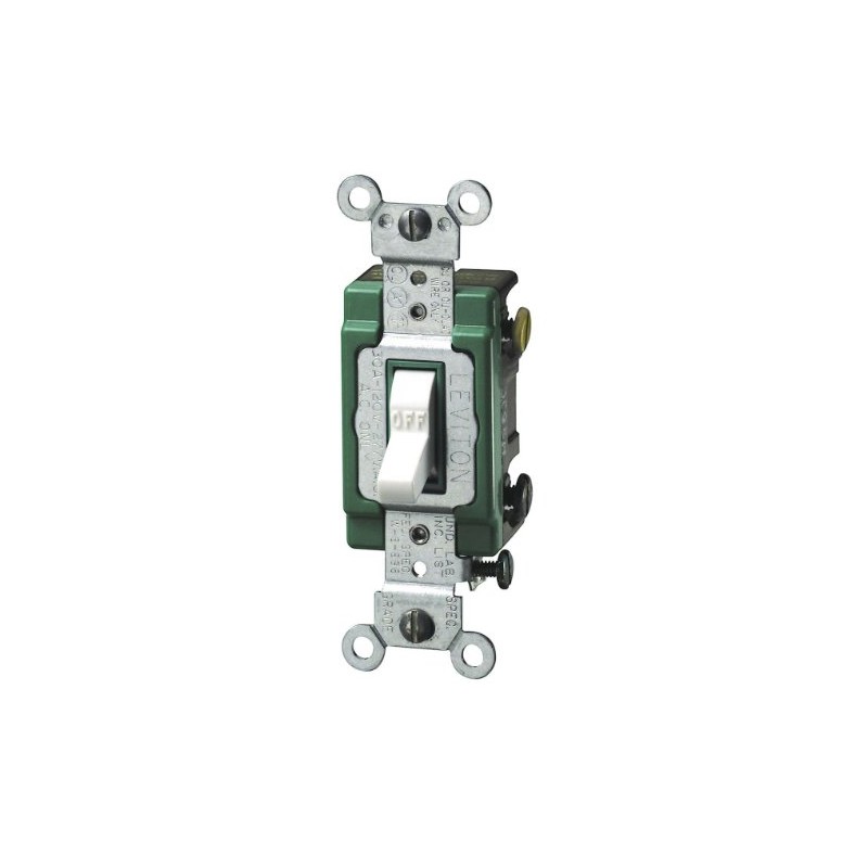 Leviton's Industrial Grade AC toggle switches for extra heavy-duty applications represent top-of-the-line quality and peak performance. Leviton uses the finest materials available and the highest production standards to produce industrial switches of unmatched versatility and reliability. 30 Amp, 120/277 Volt, Toggle Double-Pole AC Quiet Switch, Extra Heavy Duty Spec Grade, Self Grounding, Back and Side Wired, White.