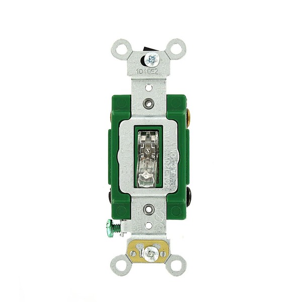 Leviton 30 Amp, 120 Volt, Toggle Pilot Light, Illuminated On, Double-Pole AC Quiet Switch, Extra Heavy Duty Grade, Self Grounding, Back and Side Wired, 3032-PLC, Clear