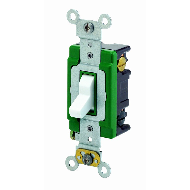 Leviton 3033-2W 30 Amp, 120/277 Volt, Toggle 3-Way AC Quiet Switch, Extra Heavy Duty Spec Grade, Self Grounding, Back and Side Wired, White