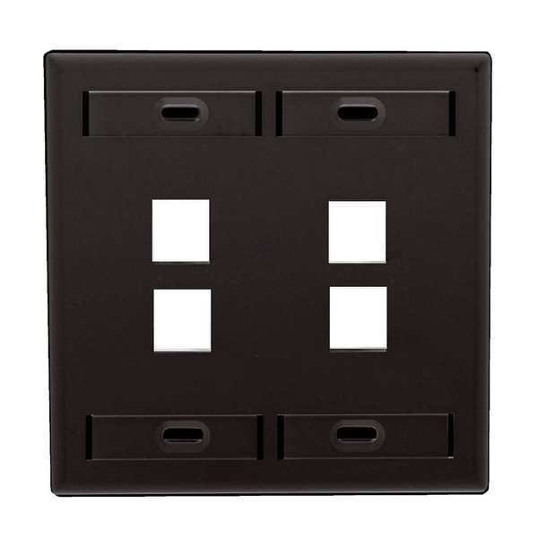 Leviton 4-Port Dual Gang QuickPort Wallplate with ID Windows, 42080-4EP, Black
