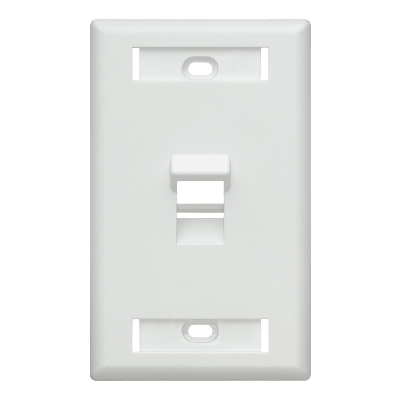 Angled single-gang wall plates accept QuickPort snap-in modules to support multimedia applications with either 1, 2, or 4 ports. Use where designation windows in an economical single-gang flush-mount housing are desired. Available in four colors: White, ivory, light almond and Black (4-port only).