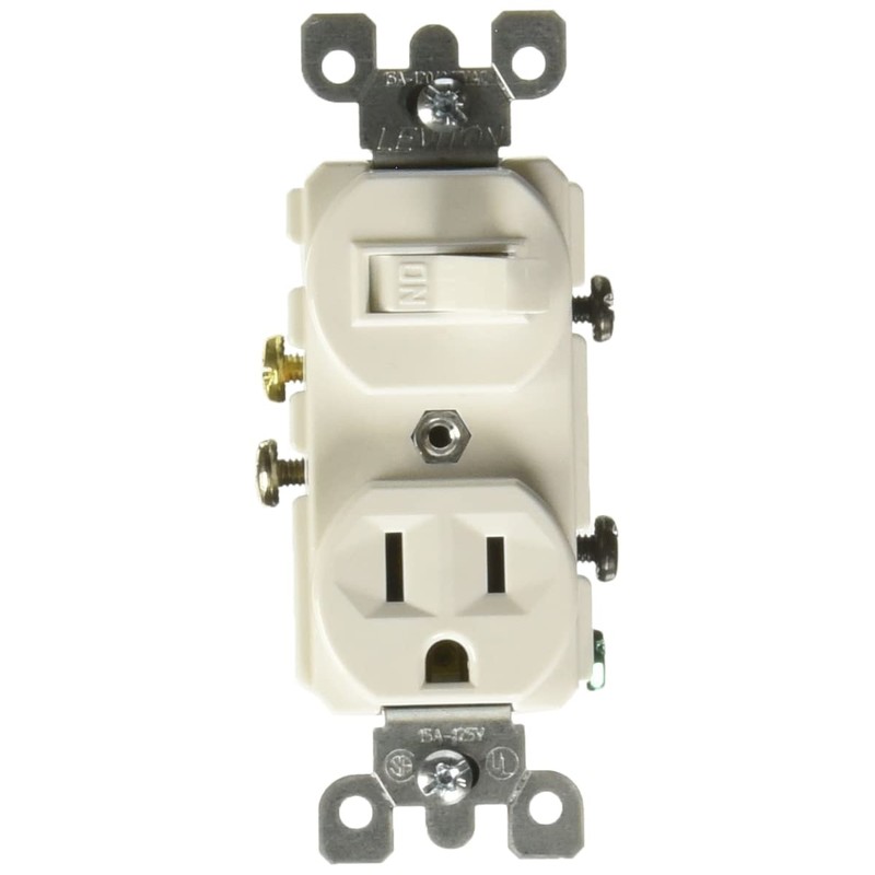Leviton 5225 15 Amp, 120 Volt, Duplex Style Combination Single Pole Switch/Receptacle, Grounding, White