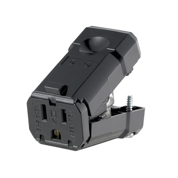 When it comes to the demanding nature of today's commercial and industrial electrical environments, ruggedness and ease of installation are the features you look for first in any line of plugs and connectors. Leviton's Python straight-blade plugs and connectors hold up..under the most exacting requirements..the toughest conditions..the roughest handling. Python's exceptional design features meet your needs for a quick, easy-to-wire plug and connector system..a must in today's faced-paced world where lost minutes on a job can translate into lost profits. 15 Amp, 125 Volt, Connector, Straight Blade, Industrial Grade, Grounding, Python, Black.