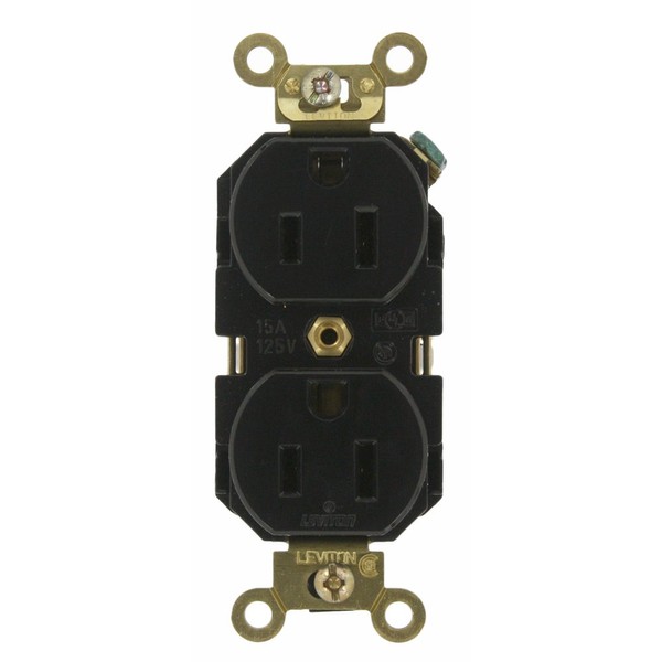 Leviton 5262-E 15-Amp, 125 Volt, Industrial Extra Heavy Duty Grade, Duplex Receptacle, Straight Blade, Self Grounding, Black