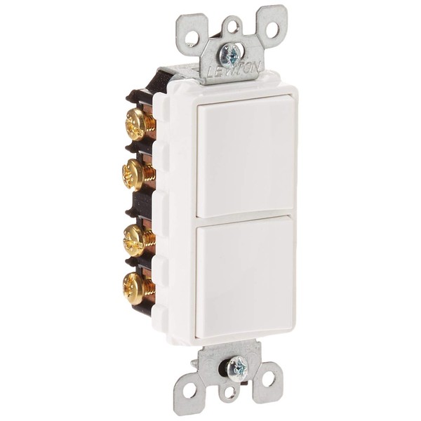 Leviton's Decora (R) Combination Switch is the perfect choice for any area in a home. Its simple, functional design allows you to save space wherever the switch is installed. Beautifully styled and part of the notable Decora line, the switch comes in a variety of popular colors. Its impact-resistant exterior ensures damage protection and a long service life. 20 Amp, 120/277 Volt, Decora brand style 3-Way / 3-Way AC Combination Switch, Commercial Grade, Grounding, White. Decora is a registered trademark of Leviton Mfg. Co., Inc.