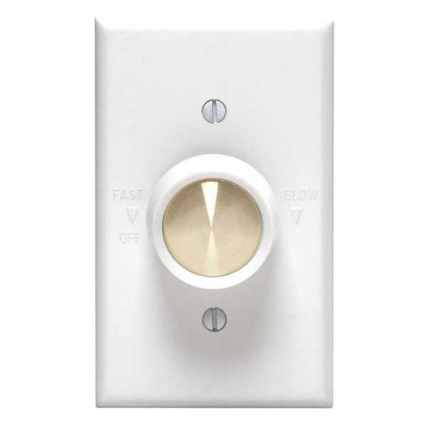 Leviton Fan Speed Control, Full Range, Variable Speed, 120 VAC, 60 Hz, 5 A, White Switch, CSA Certified, UL Listed, 1 Pole, Rotary Switch, For Paddle Fans and Other Fans Used in the Home. ROTRY FAN CONTRL5AMP WHT.