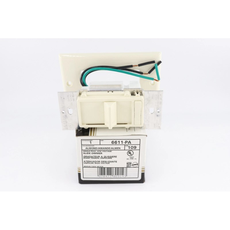LEVITON 6611-PA SINGLE POLE, LOW VOLTAGE SLIDE DIMMER 600VA-120V AC/CA, ALMOND
