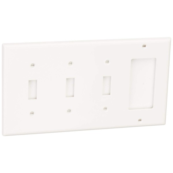 Leviton 4-Gang 3-Toggle 1-Decora Wallplate, 80732-W, White