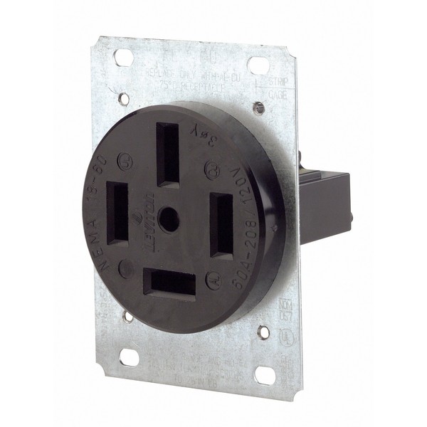 Leviton 8360 60 Amp, 120/208 Volt, Flush Mounting Receptacle, Straight Blade, Industrial Grade, Non-Grounding, Black