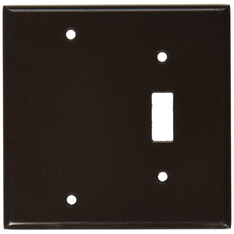 Leviton Combination Wallplates come in a variety of configurations and gangs, and are available in a broad selection of materials including, aluminum, brass, stainless steel and plastic, and in an assortment of colors. If you have a unique application, Leviton can also customize a wallplate for a specific job. 2-Gang 1-Toggle 1-Blank Device Combination Wallplate, Standard Size, Thermoset, Box Mount, Brown.