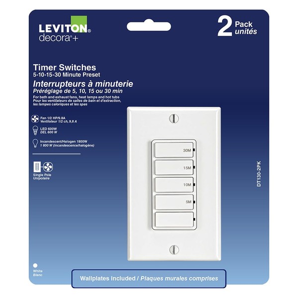 Leviton Decora Preset Resistive/Inductive 30 Minute Countdown Timer 2-Pack