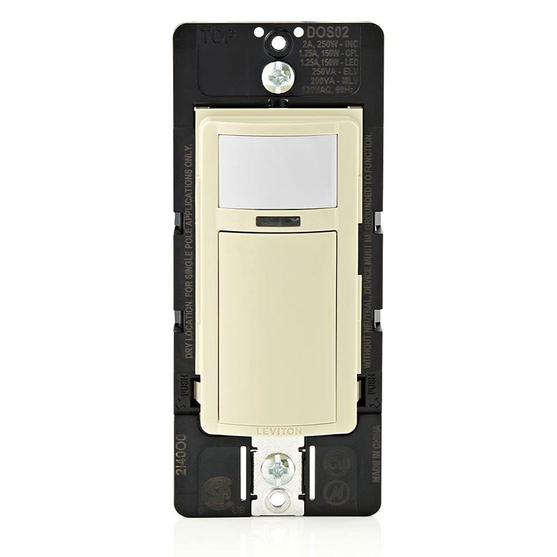 Leviton Motion Sensor Light Switch, Motion Activated, Auto-On/Auto-Off or Manual-On, 2A, No Neutral Wire Required, Single Pole, DOS02-1LI, Ivory