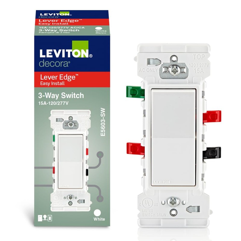 Leviton Lever Edge 15 Amp 3-Way Rocker Switch, E5603-SW, White