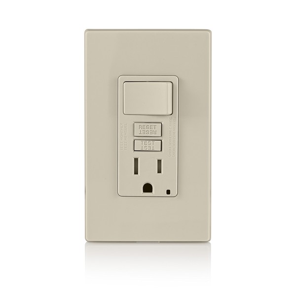 Leviton GFCI Combination Outlet with Switch, 15 Amp, Self Test, Tamper-Resistant with LED Indicator Light, Saves Space, GFSW1-T, Light Almond
