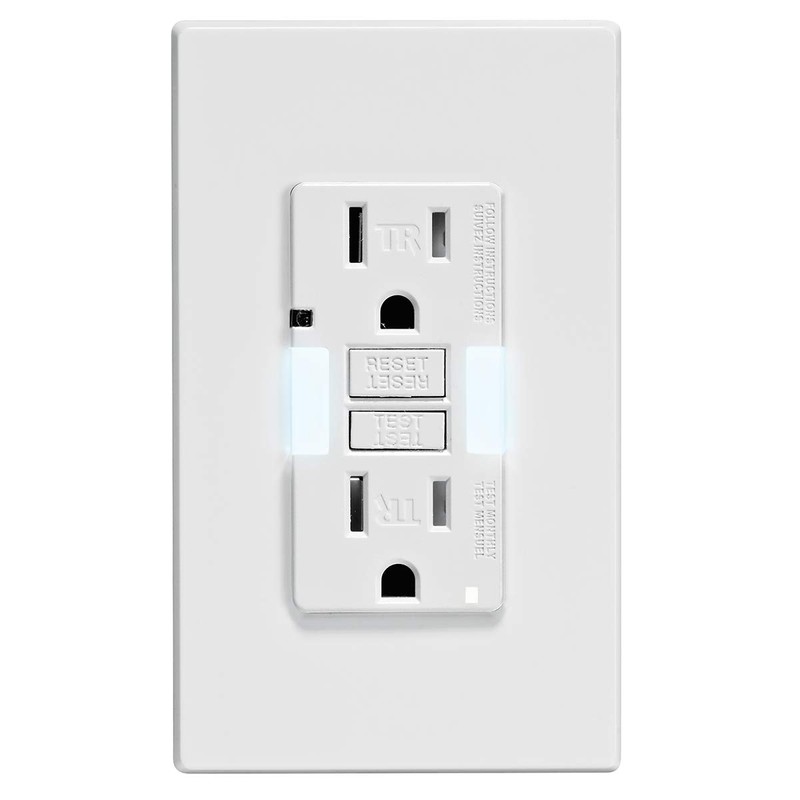 Leviton Leviton GFCI Outlet with Guidelight, 15 Amp, Self Test, Tamper-Resistant with LED Indicator Light, Replaces Plugged in Night Light, GFNL1-W, White