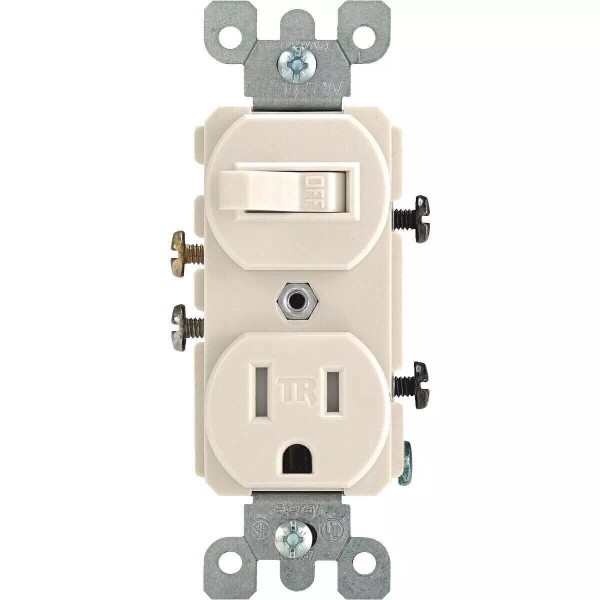 Leviton Ltal Tamp Outlet/Switch Leviton commercial grade, tamper resistant, thermoplastic, switch/outlet combination. Features a shutter mechanism inside the receptacle that blocks access to the contacts unless a 2-prong plug is inserted, ensuring that items such as hairpins and keys will be locked out. Side wired, accepts up to No. 12 copper wire. Steel strap. Receptacle: NEMA 5-15R. Switch: single pole. 2 year limited warranty. MPN# R56-T5225-0TS SKU# 501382UPC# 78477467046