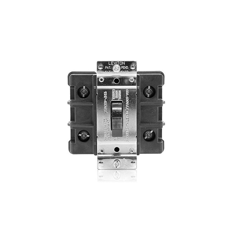 Leviton 60 Amp, 600 Volt, 2-Pole, Single-Phase Single Throw AC Manual Motor Controller, MS602-FW, Black