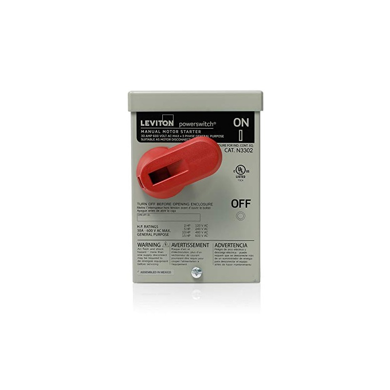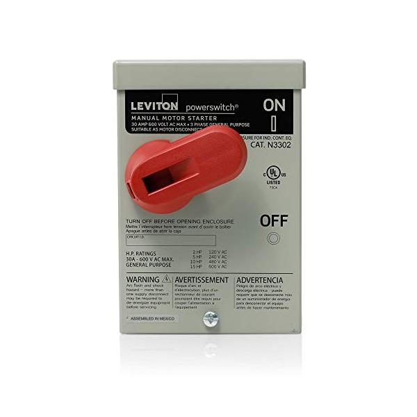 - Type 3R metal enclosure with 30A manual motor controller