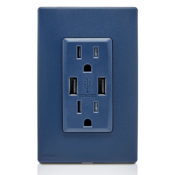 Leviton Navy Blue USB Outlet Kit 15A Renu