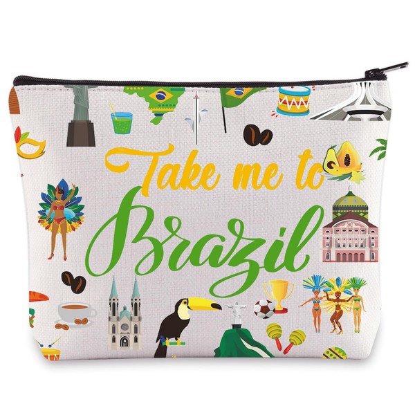 LEVLO Brazil Culture Travel Cosmetic Bag Brazil World Cup Souvenir Gift Take Me To Brazil Zipper Pouch Bag For Traveler (Take Me To Brazil)