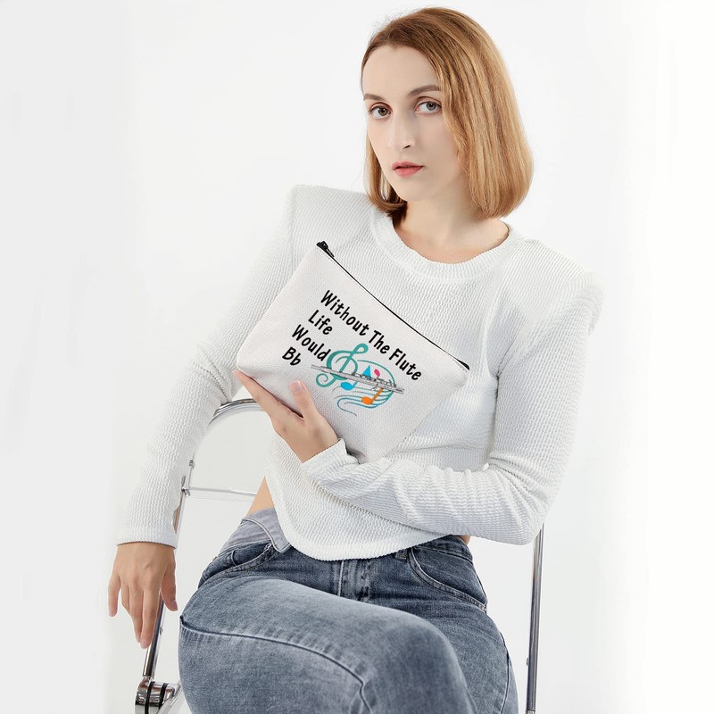 LEVLO Flutist Gift for Flute Player Without The Flute Life Would Bb Cosmetic Bag Flute Teacher Gift (Without Flute)
