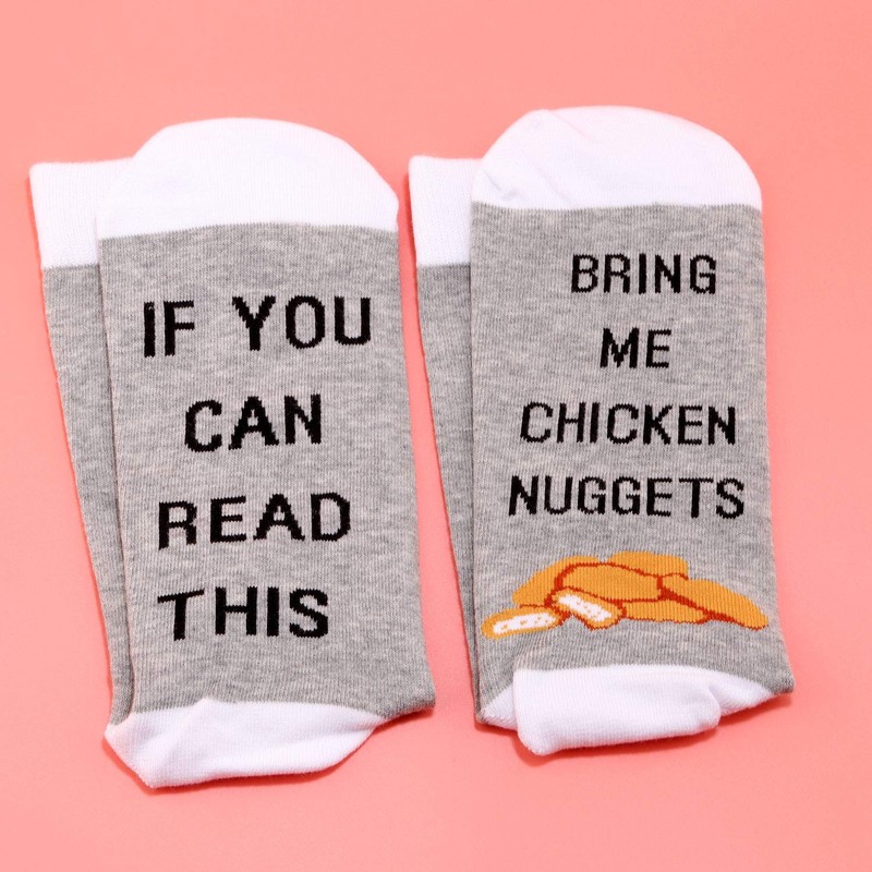 - ♥ Words on Socks: " If You Can Read This Bring Me Chicken Nuggets" A great gift for Chicken Nugget Lovers.