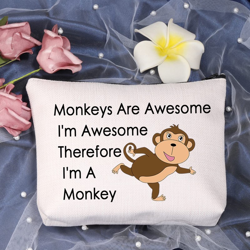 LEVLO Funny Monkeys Lover Gifts Monkeys Are Awesome I'm Awesome Therefore I'm A Monkey Makeup Bags Monkeys Women Bags (Therefore I'm A Monkey)