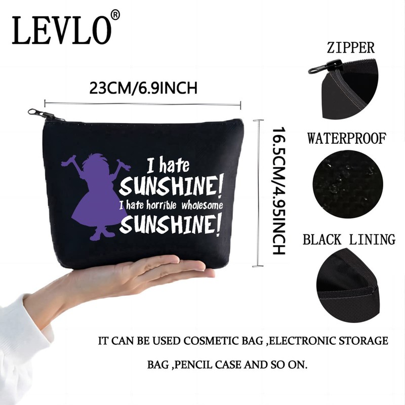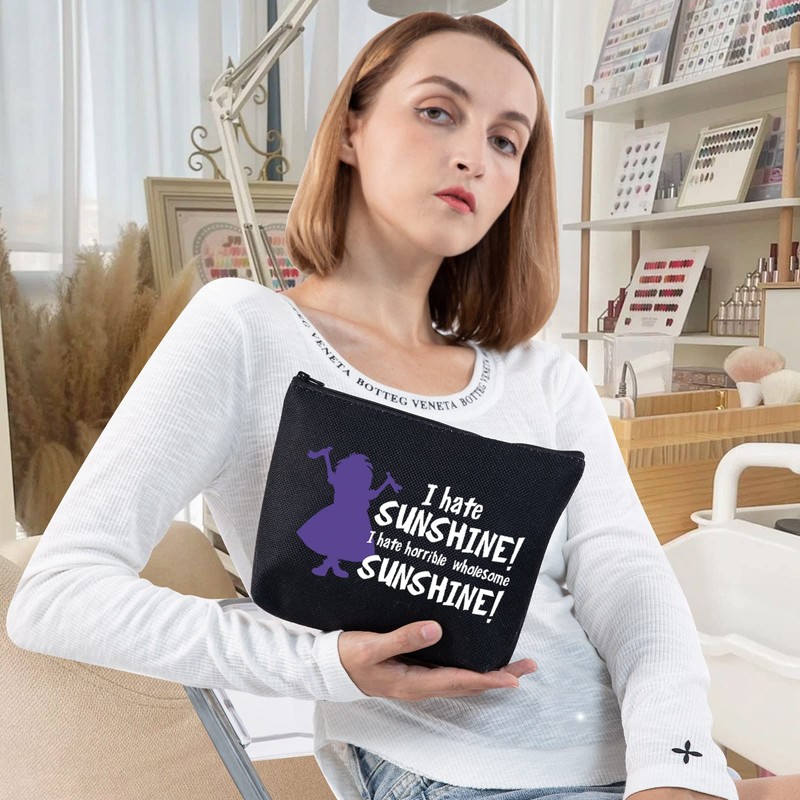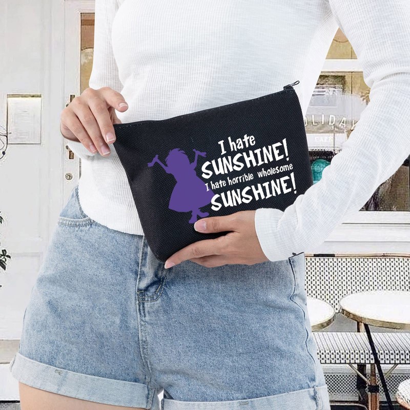 LEVLO Madam Mim Cosmetic Bag Sword Stone Movie Fans Gift I Hate Sunshine I Hate Horrible Whole Some Sunshine Makeup Zipper Pouch Bag For Women Girls, I Hate Sunshine Black, Make Up Bag