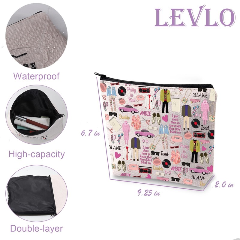 LEVLO Pretty In Pink Travel Cosmetic Bag 80's Fashion Candles Movie Storage Case Women Party 80's Pop Culture Gift (Pretty In Pink)