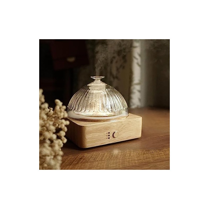 - EASILY OPERATION Aromatherapy wood and glass diffuser with 1 gold plated button,easy to use, Our wood glass design is perfect for any decor. Your friends and family will love this cool glass essential oil diffuser. It is the perfect surprise for mom/girlfriend.