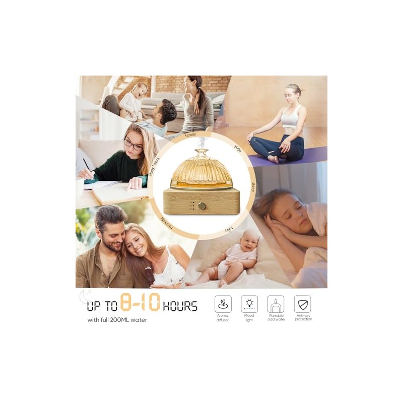 - GLASS RESERVOIR/COVER & WOOD BASEThe world's largest glass water tank aromatherapy diffuser made in hand blown glass cover/cotainer&wood base ,it features glass will not absorb essential oils,ensures the quality and effectiveness of the essential oils remains optimal, it's safe for babies and pregnant.