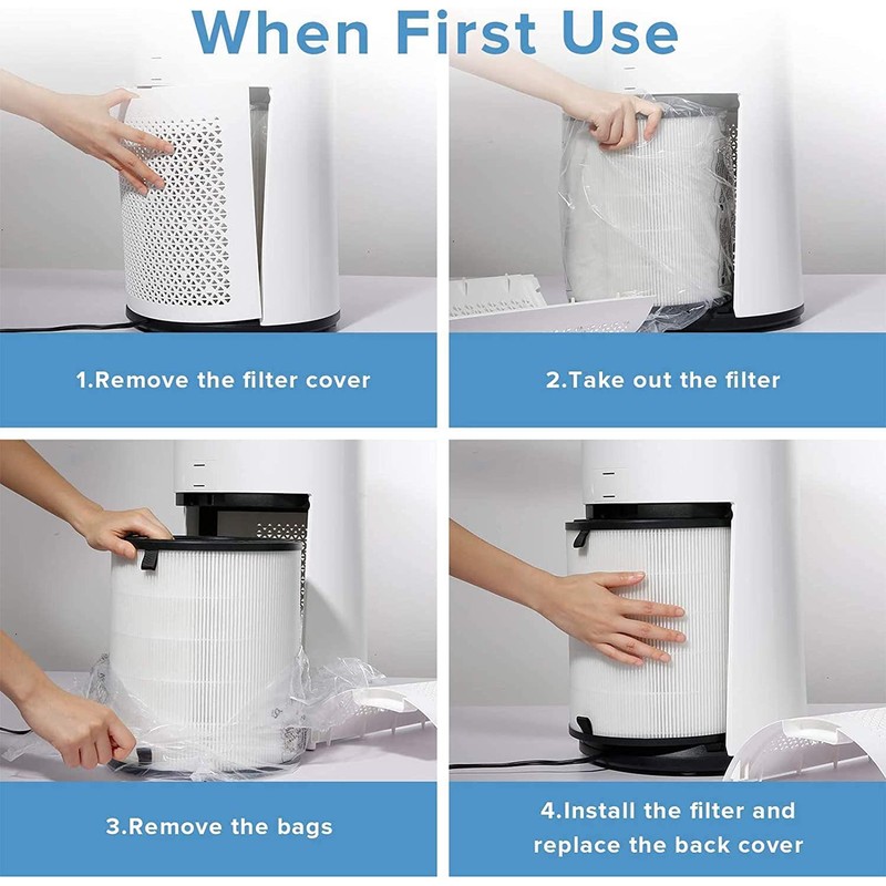 - NOTE: We recommend replacing the filter every 6-8 months. Remember to remove the filter’s plastic packaging before placing it into the air purifier