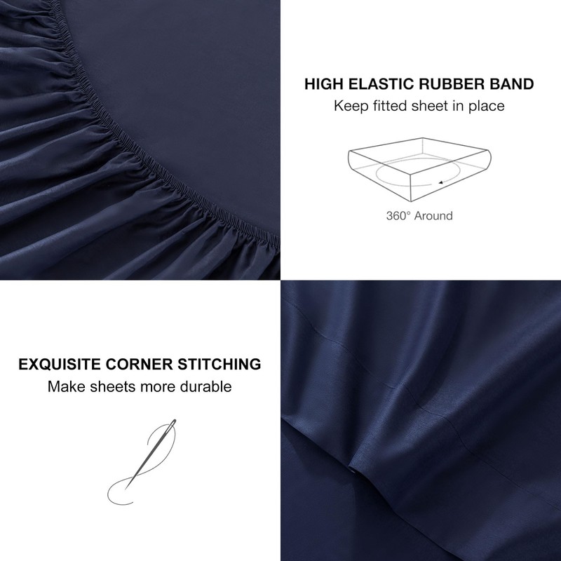 Levoo 100% Egyptian Cotton Sheets Full Size Set 18"-24" Extra Deep Pocket Full Sheets Set Soft Breathable Cooling 4Pcs Bed Sheets with 1 Flat Sheet, 1 Fitted Sheet, 2 Pillowcases (Full, Navy Blue)