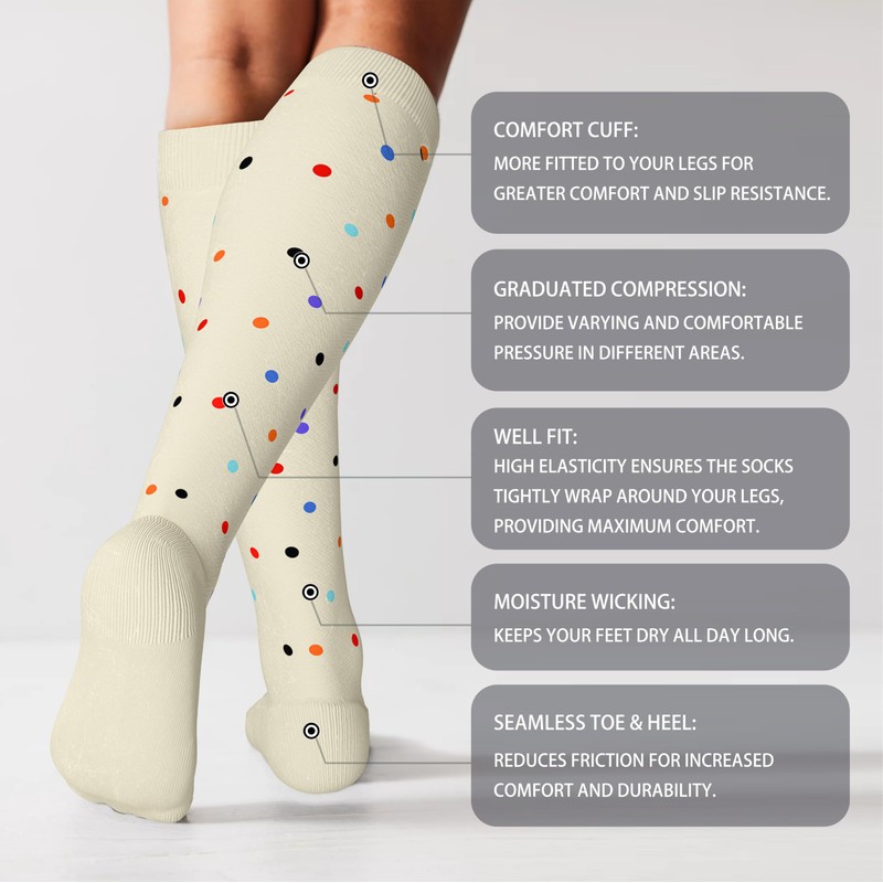 LEVSOX Cotton Compression Socks for Women&Men 20-30 mmHg Knee High Cute Fun Crazy Support Sock for Nurses, Travel and Flight, Pregnancy, 2 Pairs, Polkadots