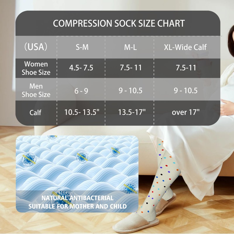 - Multifunctional Compression Socks: Compression socks for pregnancy&nurses effectively address leg-related issues, prevent blood clots and alleviate fatigue, ease swelling and pain during pregnancy, and provide support to eliminate fatigue and boost leg vitality. They are suitable for nurses, pregnant women, those with long shifts, travel and flight.