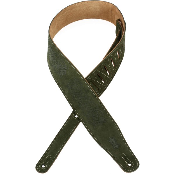 Levy's Leathers 2.5" Suede Leather Guitar Strap Celtic Knot Emboss Design; Green MS26CK-GRN