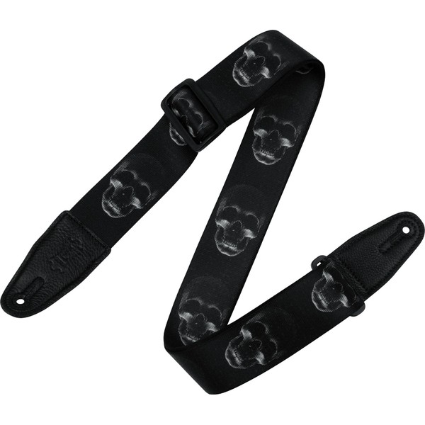 - 2-Inch Wide Polyester Guitar Strap with Black & While Scanned Skull Motif