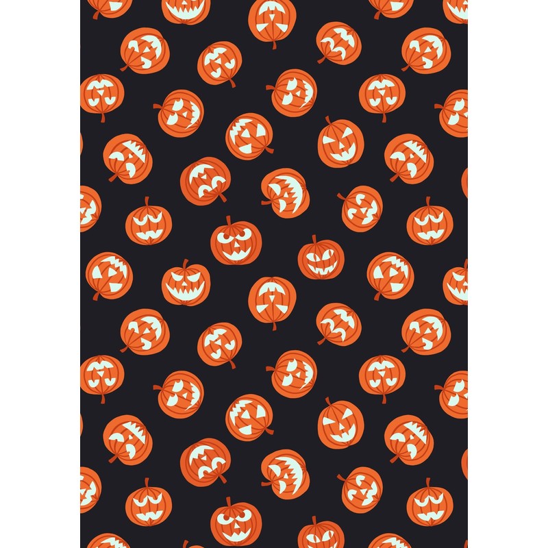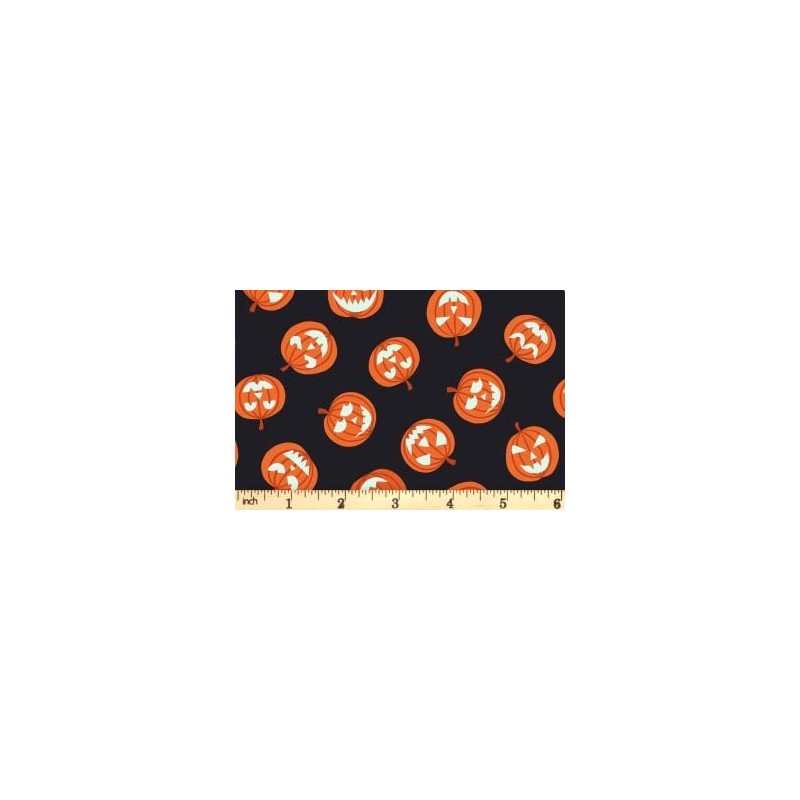 Lewis & Irene Haunted House Glow in The Dark Pumpkin Faces Fabric, Black