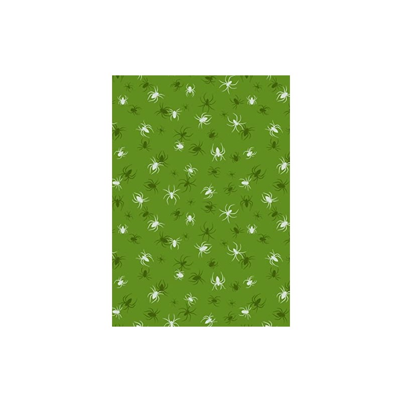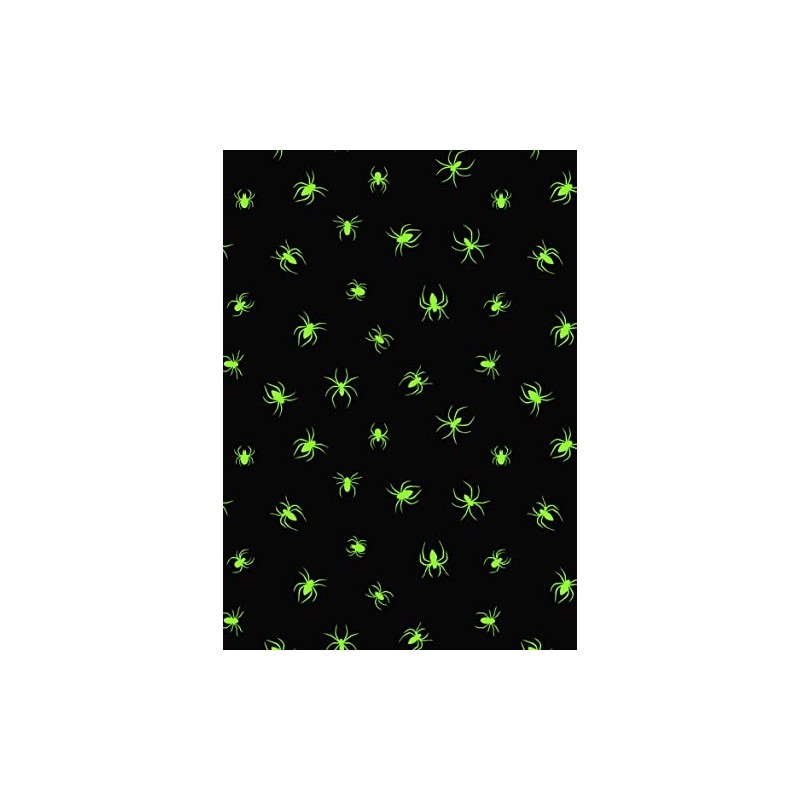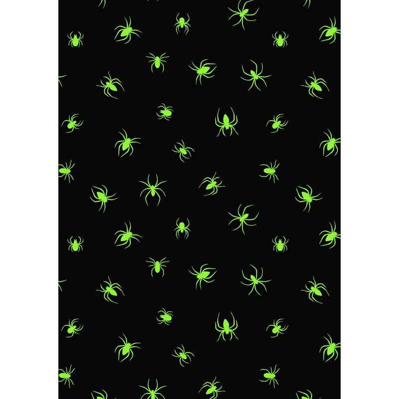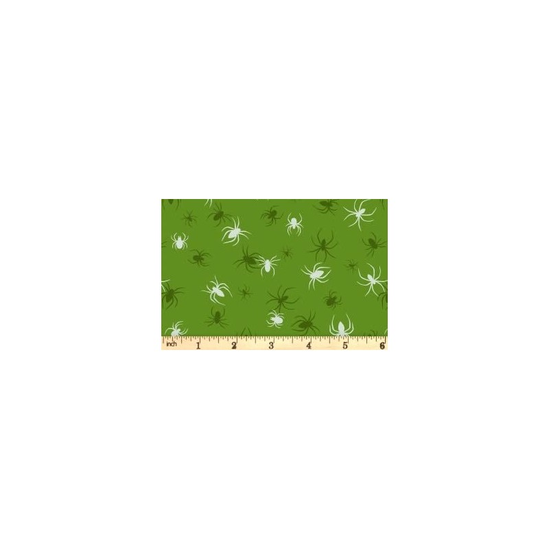 Lewis & Irene Haunted House Glow in The Dark Spiders Fabric, Green